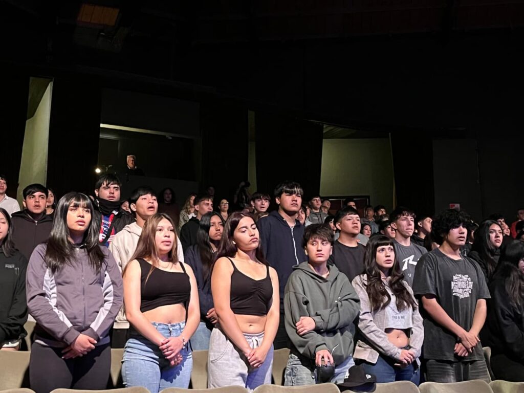 Como parte de la actividad de concientización, se proyectó el material audiovisual “Pensar Malvinas: El pullover azul”, un documental que aborda los argumentos históricos, geográficos y diplomáticos de Argentina en relación con la soberanía de las islas.