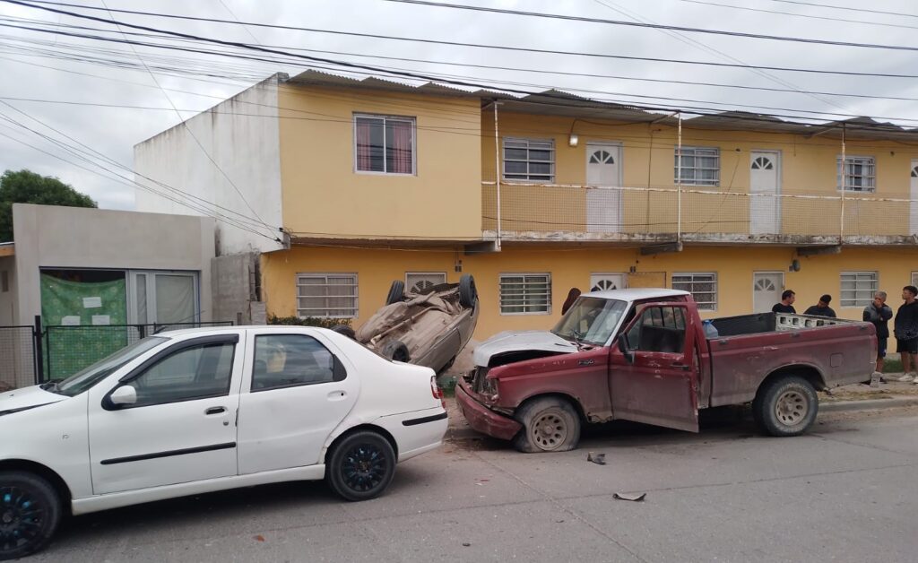 Un violento choque en cadena tuvo lugar este viernes en calle Schieroni, entre Catamarca y Santa Cruz, en el barrio Santa Clara. El incidente se registró alrededor de las 6:30 cuando los vecinos, alarmados por un fuerte estruendo, salieron de sus hogares para encontrarse con una escena caótica: un auto volcado y otros dos vehículos colisionados.