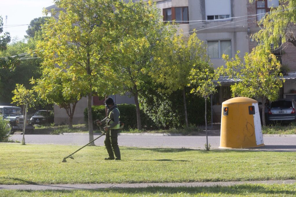 El operativo también contempló intervenciones en espacios públicos. En plaza Italia se instalaron cinco reflectores nuevos y se repararon otros cuatro, mientras que se enderezaron columnas que se encontraban inclinadas tanto en ese sector como en la plaza del barrio 14 de Marzo. Además, se colocaron carteles y se trabajó en un triángulo urbano con la incorporación de plantas, aportando mejoras ambientales y paisajísticas.