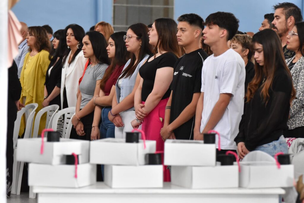 El acto contó con la presencia del Intendente Municipal, Ricardo Marino; junto al Coordinador de Control y Políticas Públicas, Cristian Duarte, el Secretario de Gobierno, Matías Pérez, la Delegada Municipal, Lorena Spasiuk, el Inspector Jefe Regional, Claudio Martini; la Inspectora Jefa Distrital, Estela Sosa; la presidenta del Consejo Escolar, Andrea Catellani, autoridades educativas, directivos de instituciones, docentes y comunidad educativa en general.