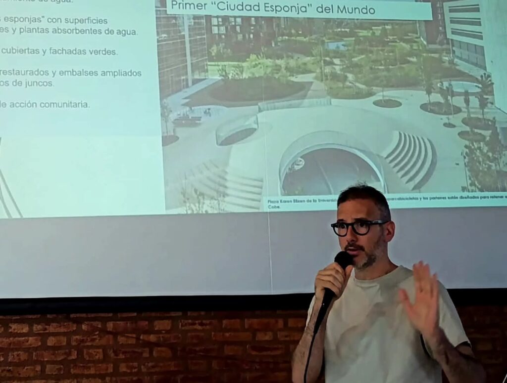 Durante la jornada disertaron el Lic. Cristian Musi Saluj, quien abordó los impactos del cambio climático y los eventos extremos en la región, y el Lic. Guillermo D’Ambrosio, quien expuso sobre el ordenamiento territorial y la necesidad de pensar ciudades más resilientes.