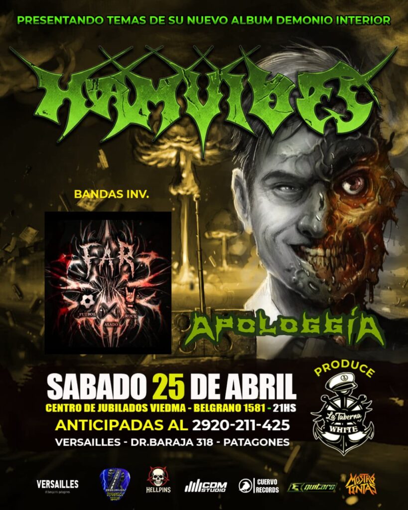 Abril no será un mes cualquiera para los amantes del metal en la Comarca Viedma Patagones y la región. El sábado 25 se realizará una fecha especial de Thrash Metal con la presentación de Hamvides, quienes estarán acompañados por las bandas teloneras FAR de Viedma y Apologgia de Carmen de Patagones.